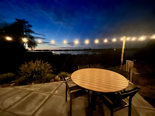 Natuurlijk ga je bij aankomst eerst het adembenemende uitzicht checken. Het Ibiesa-terras ligt pal aan de Amer met uitzicht op de Biesbosch, vanaf hier geniet je in het zonnetje van de bootjes die voorbij varen. Mocht het iets minder weer zijn, dan zit je binnen ook heerlijk aan de ruime eettafel en kun je genieten van hetzelfde uitzicht.